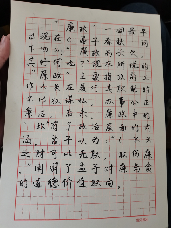 作品简介:“廉政”一词最早出现在“廉政而长久,其行何也?”现在所说的“廉政”主要指政府工作人员在履行其职能时不以权谋私,办事公正廉洁。