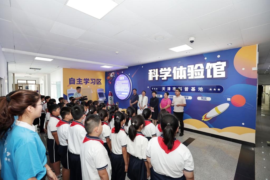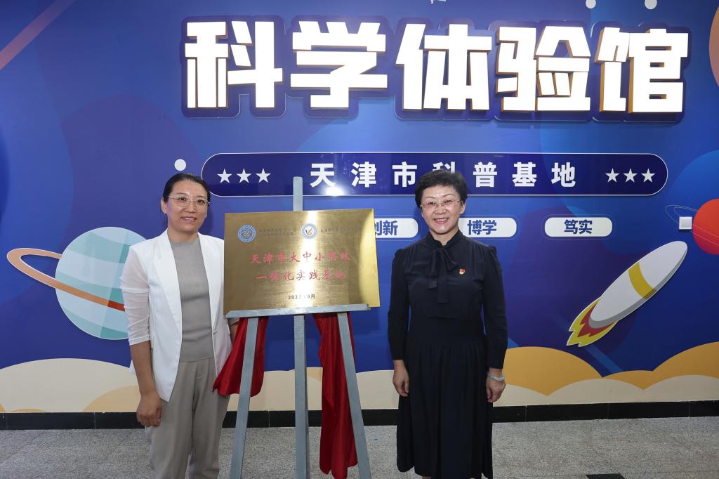 刘英和赵晓艳共同为天津市大中小学思政一体化基地揭牌并致辞。双方表示,此次活动是打开小学生科学视野的有利途径,将充分利用科普资源做好大中小思政一体化建设。双方还就学科科技节和课后服务建设等方面达成合作意向。