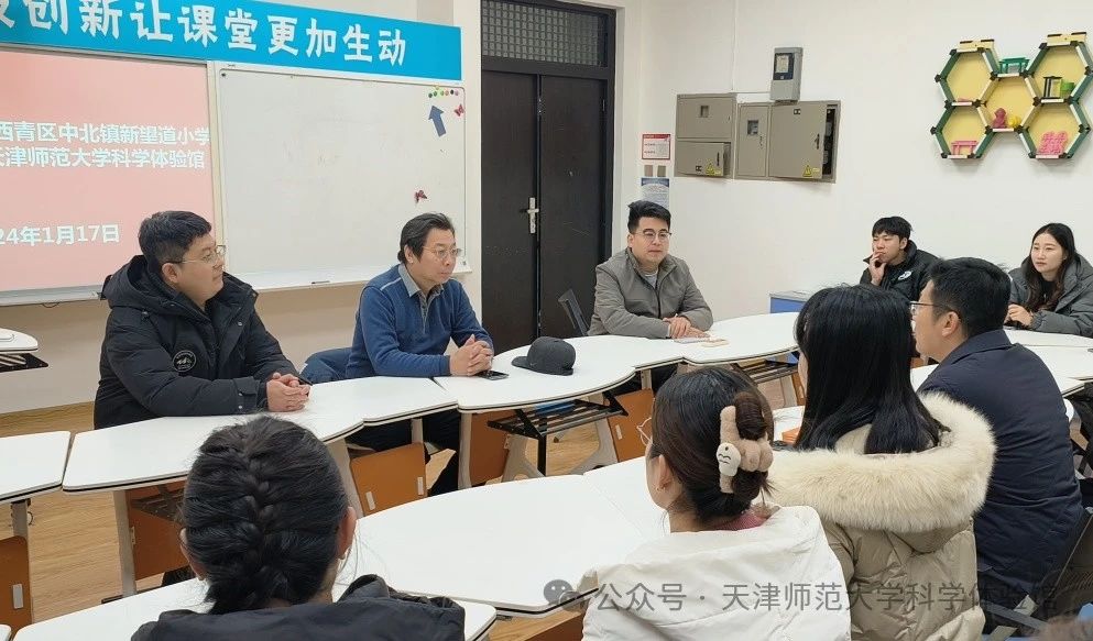 为进一步落实天津市大中小思政一体化建设要求,推进K体育·「中国」官方网站科普基地实践育人建设,1月17日上午,天津市西青区中北镇新望道小学叶鸿琳校长一行20余人到科学体验馆开展交流活动。物理学院科普基地指导教师孙佩雄、实验中心曹猛和辅导员刘通参加此次交流活动。