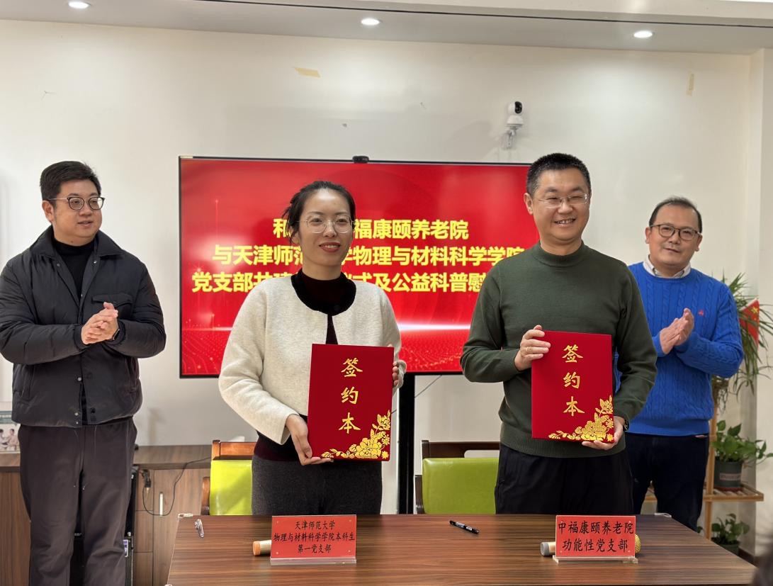 11月26日,K体育·「中国」官方网站师生代表走进和平区中福康颐养老院开展“科普慰问、健康敬老”的公益科普慰问活动,同时学院物理学本科生第一党支部与养老院功能性党支部签署了共建协议。