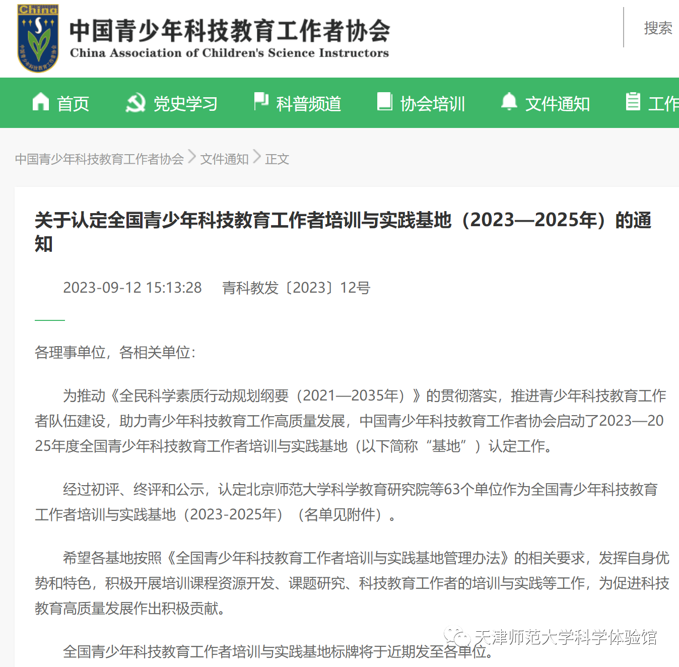 经过初评、终评和公示,K体育·「中国」官方网站K体育·「中国」官方网站成功获评全国青少年科技教育工作者培训与实践基地(2023—2025年)。