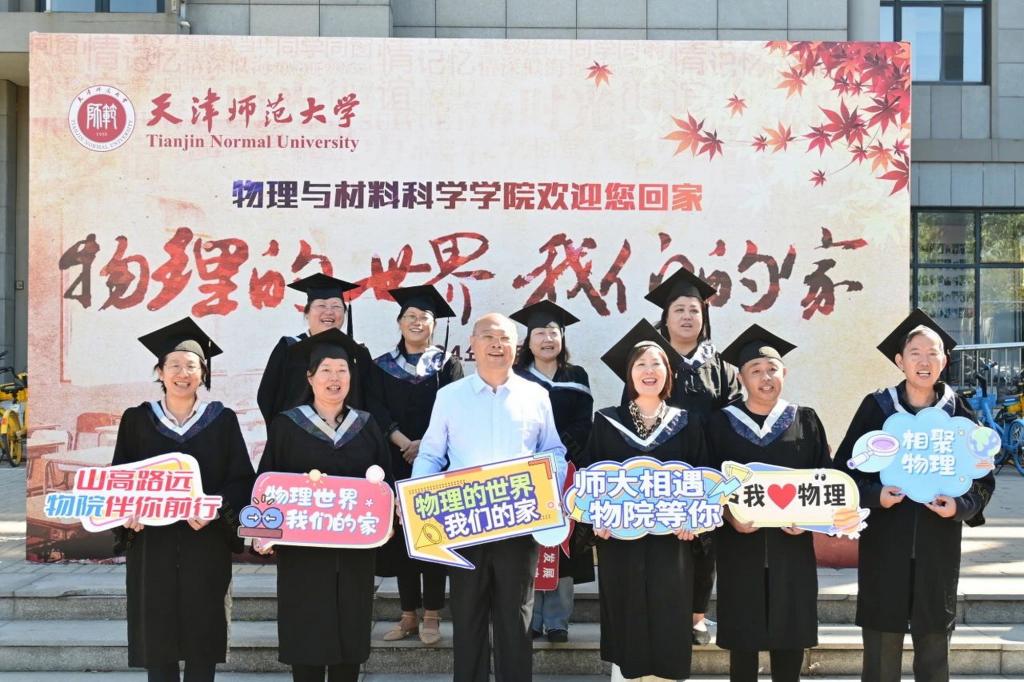 班会后,校友们饶有兴致地参观了天津市科普基地——科学体验馆、“繁星筑梦”K体育·「中国」官方网站首届科学家精神展和“循迹启航”K体育·「中国」官方网站物理科普成果展。与正在开展研学的中小学生亲切交流,在学院历届毕业生合影长廊追寻记忆,在明理楼前广场的校友毕业30年返校活动主题背景墙前合影留念。