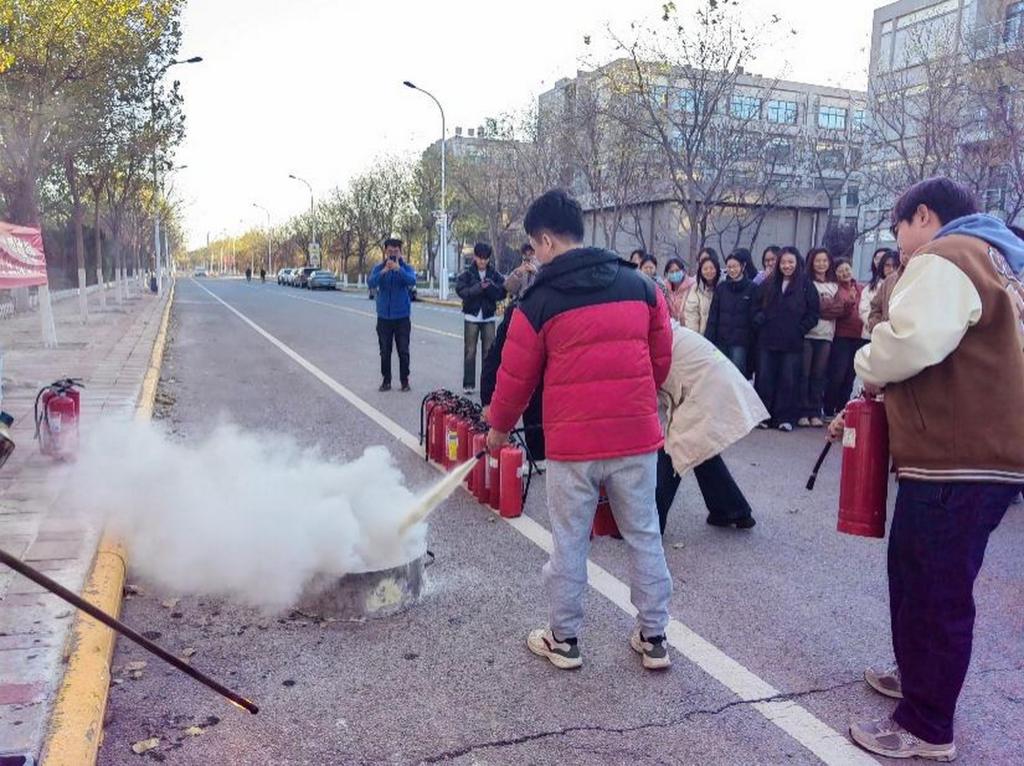 张辰昊介绍了实验室和日常生活中可能出现的典型火灾案例,就如何预防火灾、常用消防设施的使用方法、疏散逃生的注意事项等进行了详细讲解。在灭火器安全使用操作培训中,现场教学灭火器的标准配备和使用方法,用“提拔握压”四字操作步骤生动形象地向大家作了演示,同学们通过实际操作准确掌握了灭火器的使用方法,切实提高了自身应对风险的处置能力。