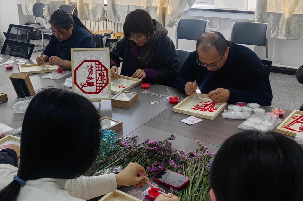 在第115个“三八”国际劳动妇女节来临之际,为深入贯彻清正廉洁、坚守初心的精神,营造风清气正的学院环境,丰富学院女教职工精神生活,3月6日中午,K体育·「中国」官方网站纪委联合学院工会分会共同开展“展巾帼风采,沐廉政清风”国际劳动妇女节主题活动,捻纸为画,共庆女神佳节,润物无声,同沐廉政清风。学院领导班子及全体女教职工齐聚一堂,以“纸浆画”“干花画”为载体,将廉政文化融入艺术创作,在指尖流转间涵养清风正气,共度别具意义的节日时光。
